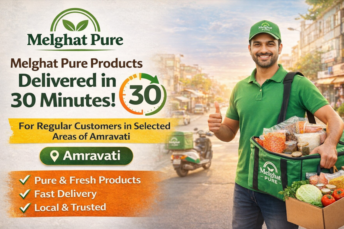 Melghat Pure Products Delivery in 30 Minutes for Regular Customers in Amravati Great news for health-conscious households in ! is bringing unmatched convenience with 30-minute delivery for regular customers in selected areas of Amravati. This fast, reliable service is designed to ensure that your daily essentials—pure grains, dals, flours, and spices—reach your doorstep quickly, fresh, and hassle-free. Why 30-Minute Delivery Matters In today’s busy routines, timely access to quality groceries makes a real difference. Melghat Pure’s 30-minute delivery is crafted for families who value purity, speed, and trust. Whether you’re preparing a quick meal, hosting guests, or simply forgot an essential ingredient, this service ensures you never compromise on quality or time. Who Can Avail This Service? The 30-minute delivery is available to regular Melghat Pure customers in selected localities of Amravati. Regular customers enjoy priority processing, streamlined packing, and faster dispatch from nearby fulfillment points—making ultra-quick delivery possible while maintaining strict quality standards. What Products Are Delivered Fast? Melghat Pure’s fast delivery covers a wide range of everyday essentials, including: Each order is hygienically packed, minimally processed, and sourced with transparency—so speed never comes at the cost of purity. Built on Trust, Powered by Local Strength Melghat Pure works closely with farmers and local supply chains, enabling quick movement from storage to your kitchen. This local-first approach not only supports farmers but also helps reduce delivery times and preserve freshness. For Amravati customers, it means dependable service that respects both health and convenience. How to Get 30-Minute Delivery A Smarter Way to Shop in Amravati With Melghat Pure’s 30-minute delivery, grocery shopping becomes effortless. You get trusted quality, transparent sourcing, and rapid fulfillment—all from a brand committed to purity and community. Experience the future of grocery delivery in Amravati today.Choose Melghat Pure for fast, fresh, and reliable essentials—delivered in just 30 minutes for regular customers in selected areas.